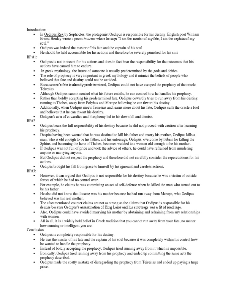 There may also be a point in our lives when making a decision may lead to an error in judgement. In the play Oedipus Rex, written by Sophocles, both of these characteristics can be seen in the main character, essay on oedipus. These characteristics are known as the tragic flaw. these flaws are like hubris meaning excess pride, leading to overconfidence, and hamartia meaning errors and weakness in judgement. Both of these characteristics are the main reason of destruction and In other words, Oedipus, who can be argued to be an exceptional human being belonging to a high rank in society, has limited free will because he is doomed by the gods and not much can be done by him or his parents to prevent that.