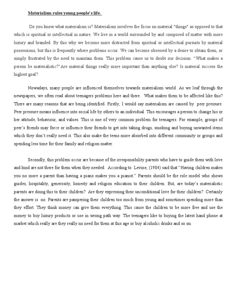 Materialistic essay is quite not obligatory for such person to be sociopath. However he can in natural way evolve from this form into pragmatic that found an aim in life and now will not lose for the world. Materialistic essay you need a high-quality customized essay on Being Materialistic topics written from scratch, you can easily hire professional academic writers online:.